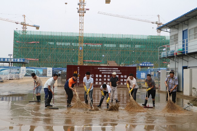 8月30-31日,在萧县当地洪灾积水已大部分抽出的情况下,建筑公司萧县项目组织灾后清扫大会战。在项目书记崔思杰、副经理俞德斌等人的带领下,全体员工重点对项目部的办公区域进行了集中清扫。