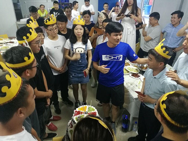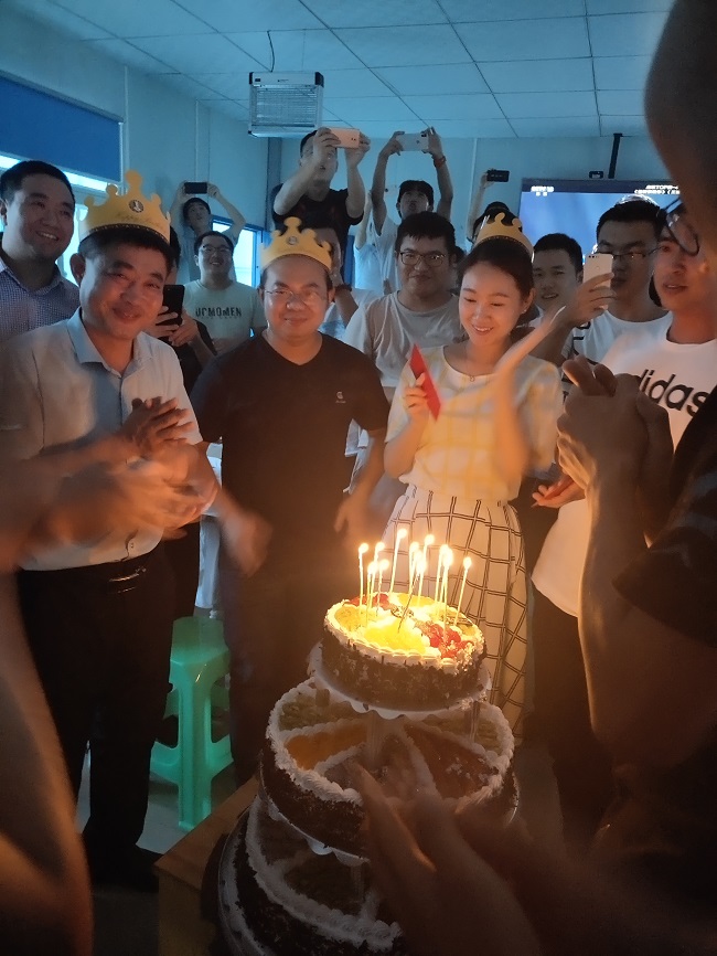 8月31日晚,青白江项目经理黄忠斌带领项目领导班子和全体员工,共同为9位“寿星”庆生,并送上了项目的祝福。