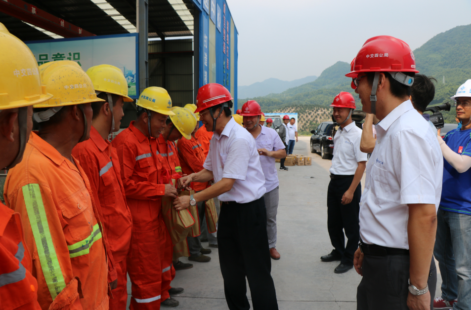 7月30日,绍兴市总工会到四公司杭绍台4标项目进行慰问,绍兴市总工会党组书记、副主席赵爱庆,副主席章顺德在绍兴市交通建设有限公司相关领导的带领下,深入生产一线看望和慰问高温下仍在进行施工作业的建设者们,亲切地与职工们交谈,并关心询问他们在高温条件下的工作和休息情况,感谢他们冒着高温不辞辛苦地工作,并提醒大家一定要采取措施做好高温防暑,随后为职工送上了解暑洗漱、防暑降温用品。