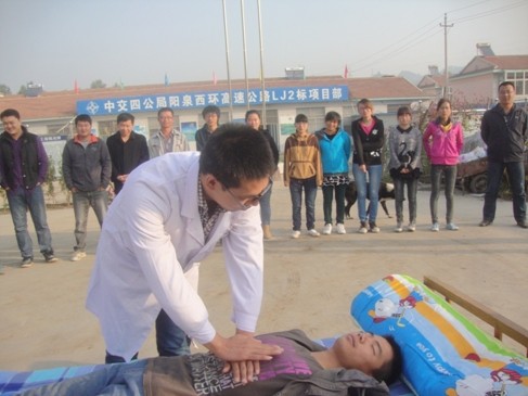 3.公司各项目部还邀请项目当地医务人员对日常救护知识(如包扎、心脏急救、中毒急救等)进行培训演示,增强青年员工救援能力。