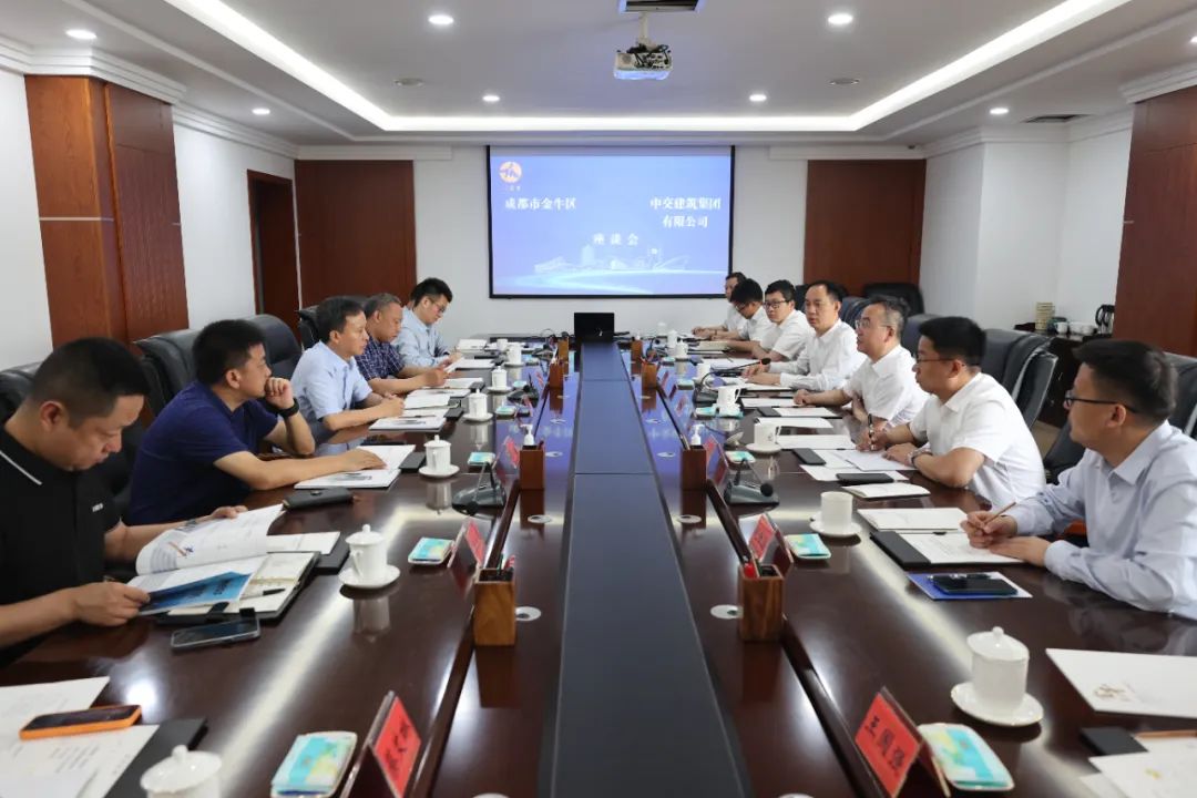 5月19日,中交建筑党委书记、董事长蔡彬在成都拜会了成都市金牛区委书记周德强,双方就进一步深化务实合作进行座谈交流。