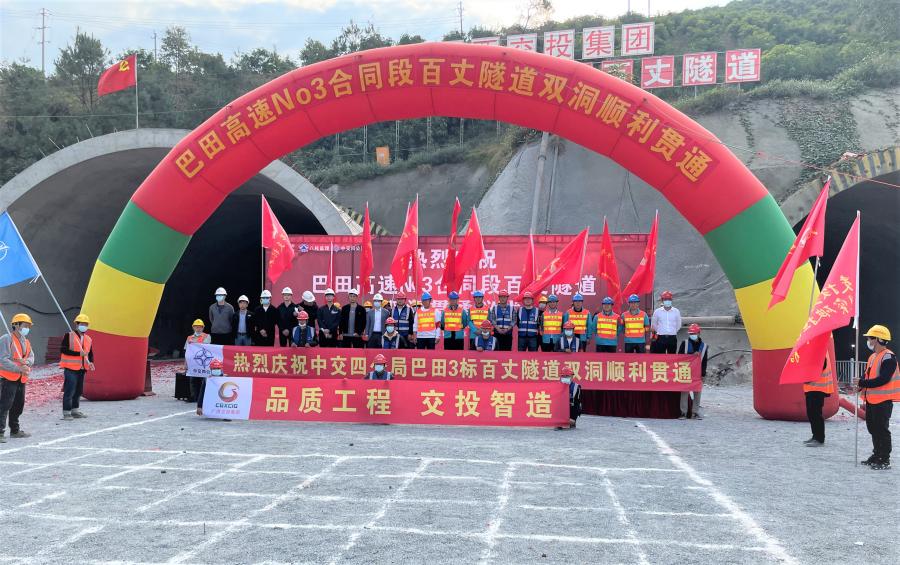 12月10日,巴田3标项目百丈隧道右洞顺利贯通,至此,百丈隧道实现双洞贯通。