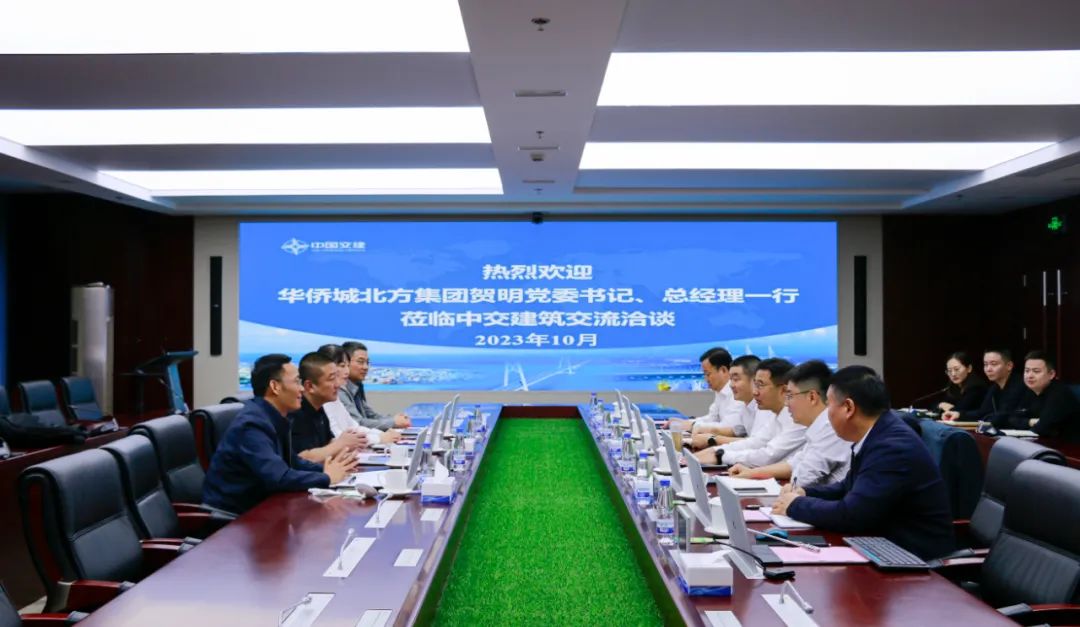 滕伟对贺明一行的到访表示热烈欢迎,对近期中交建筑跟踪的重点项目进行了推介,并介绍了中交建筑的发展现状、业务结构、品牌建设、市场规划及参股房地产的模式和要求等情况。他表示,中交建筑作为拥有“三特三甲”资质的大型基础设施综合服务商,在大交通、大城市等领域具有全产业链一体化服务能力。希望与华侨城北方集团互联互通,扎实抓好战略协议内容的落实,进一步开展全方位、全领域、全要素合作,推动双方建立长期、稳定、深入的战略性合作关系,实现优势互补、互利互惠、合作共赢。