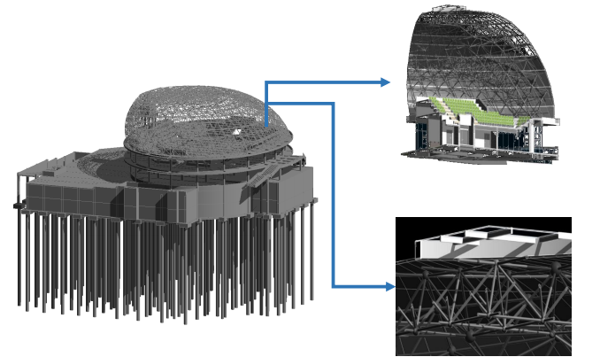 1.基于BIM技术对自由曲面钢网壳结构进行建模,并利用 dynamo 软件对网壳结构进行快速编码,实现施工过程的数字化管理。