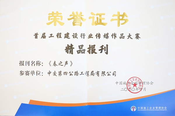 近日,中国施工企业管理协会在成都组织工程建设行业企业文化交流大会。会议对工程建设行业传媒作品大赛的结果予以公布,四公局《春之声》荣获“精品报刊”。