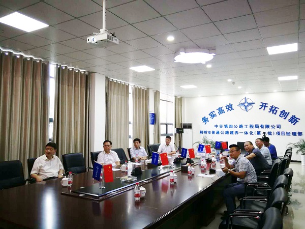 9月19日,孝感市市委书记潘启胜一行到一公司“荆州建养一体化”项目调研指导,荆州市市委秘书长段昌林等陪同。