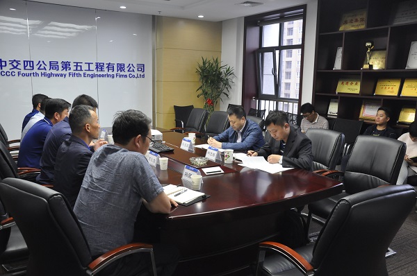 9月18日,四公局党委副书记、纪委书记、工会主席孙玉波到五公司调研指导,局审计监察部副总经理柯志新陪同指导,五公司中层以上人员参加会议。