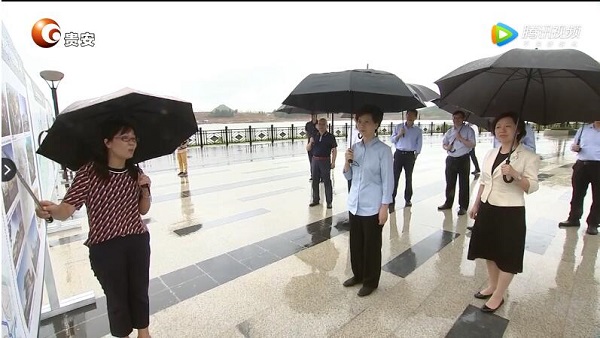 8月7日,贵州省委副书记、省长谌贻琴率队到贵安新区海绵城市试点两湖一河PPP项目调研指导。贵州省常务副省长李再勇,省政府秘书长张平、常务副秘书长李作勋、省政府研究室主任田茂松等领导参与调研,贵州贵安新区党工委书记朱桂云、管委会主任孙登峰、副主任许剑龙等陪同调研。
