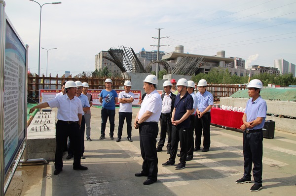 云光中深入施工现场,详细查看了金盛路北段高架桥段、大黑河斜拉桥、南段什不斜气跨线桥等工程实体,重点了解了工程规划设计、施工组织等情况,询问了规划建设中存在的困难,听取了总项目经理部李亚宁对施工进展情况、工程计划及目前建设存在问题的工作汇报。