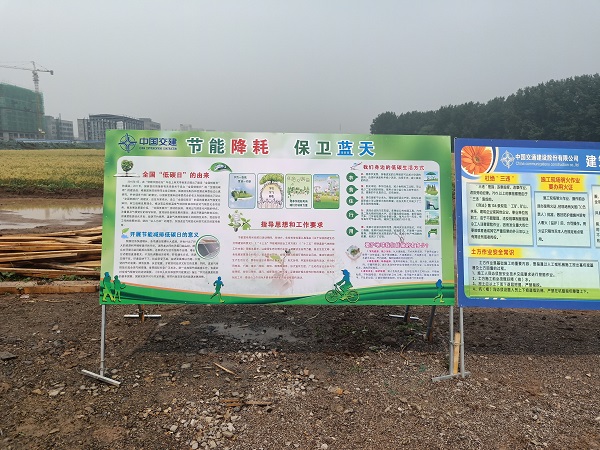 山水公司京津中关村项目部在施工现场设置了“节能降耗 保卫蓝天”主题展板,面向施工人员宣传节能减排的重要性。