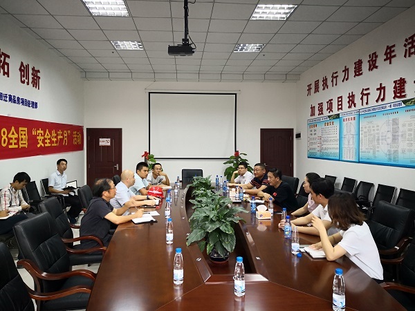 蔡建民一行全面查看了项目的施工进度、标准化建设、安全生产管理以及质量控制情况,听取了项目经理王付芳对现阶段施工情况和后期施工计划的汇报。