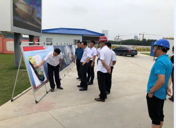 6月28日,汉中市副市长周景祥到城投公司开发、建筑二公司参建的汉中天汉大剧院及滨江公园一号项目调研指导,汉中市滨江新区管委会主任李清荣、城投公司滨江新区项目负责人刘立峰、建筑二公司汉中片区项目经理王达等陪同。