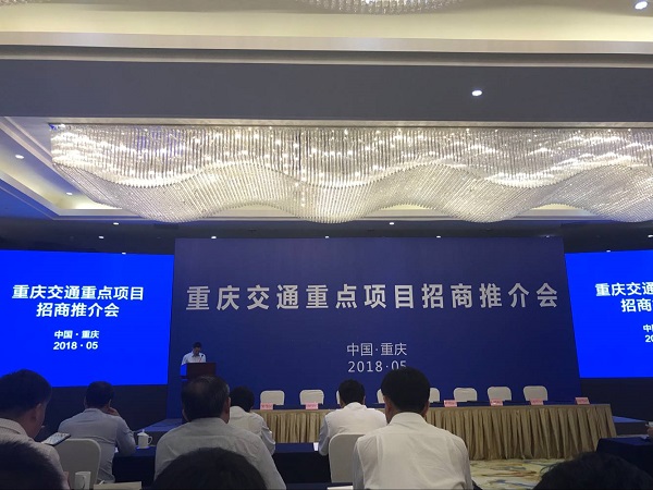 5月18日,局党委委员、董事、副总经理许宝忠受邀出席2018年重庆综合交通重点项目招商推介会。重庆市发改委、财政局、国土房管局、规划局等市级部门负责人,重庆市相关区(县)政府代表人,中国交建、中国铁建、中国中铁等中央和地方大型企业集团,国开行重庆分行、农发行重庆分行等相关金融单位,重庆市高速公路集团有限公司等重庆市交通行业单位近160人参加会议。