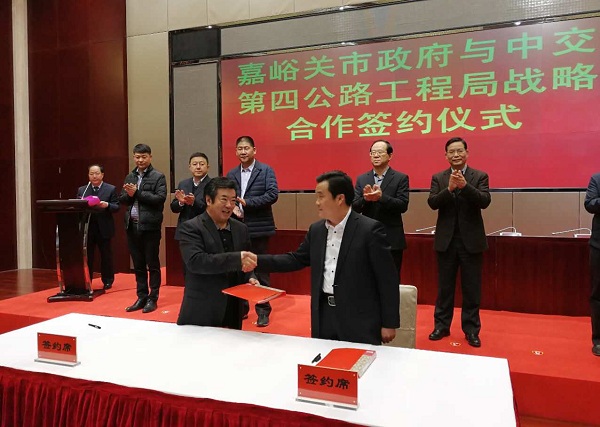 3月1日,四公局党委书记、董事长赵云在嘉峪关市会见了嘉峪关市市委书记柳鹏、市长王砚,双方就深化在基础设施建设领域中的合作举行会谈,并共同出席嘉峪关市政府与四公局战略合作签约仪式。中交铁道总院党委书记、董事长王国峰出席签约仪式并致辞。
