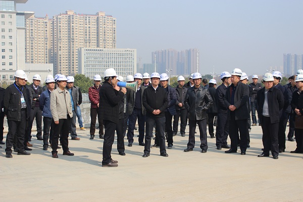 2月15日,孝感市市委常委、副市长周先来到总承包公司孝感市文化中心项目调研指导,孝感市政府副秘书长高汉辉等陪同。