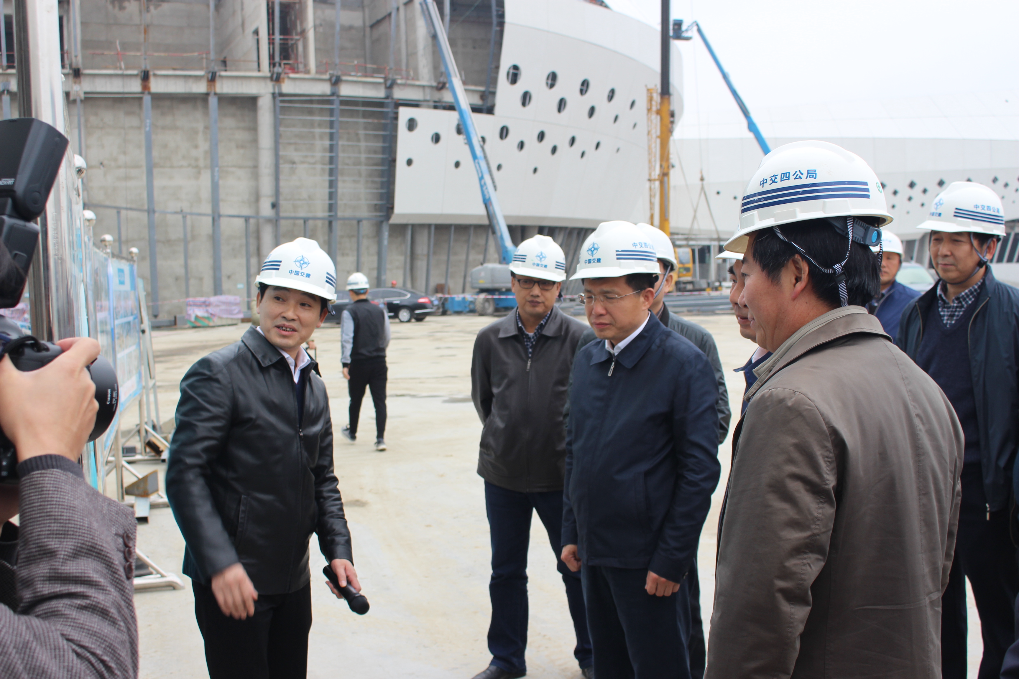 11月2日,湖北省委常委、宣传部部长梁伟年到四公局总承包分公司孝感市文化中心项目调研指导,孝感市委书记陶宏陪同。