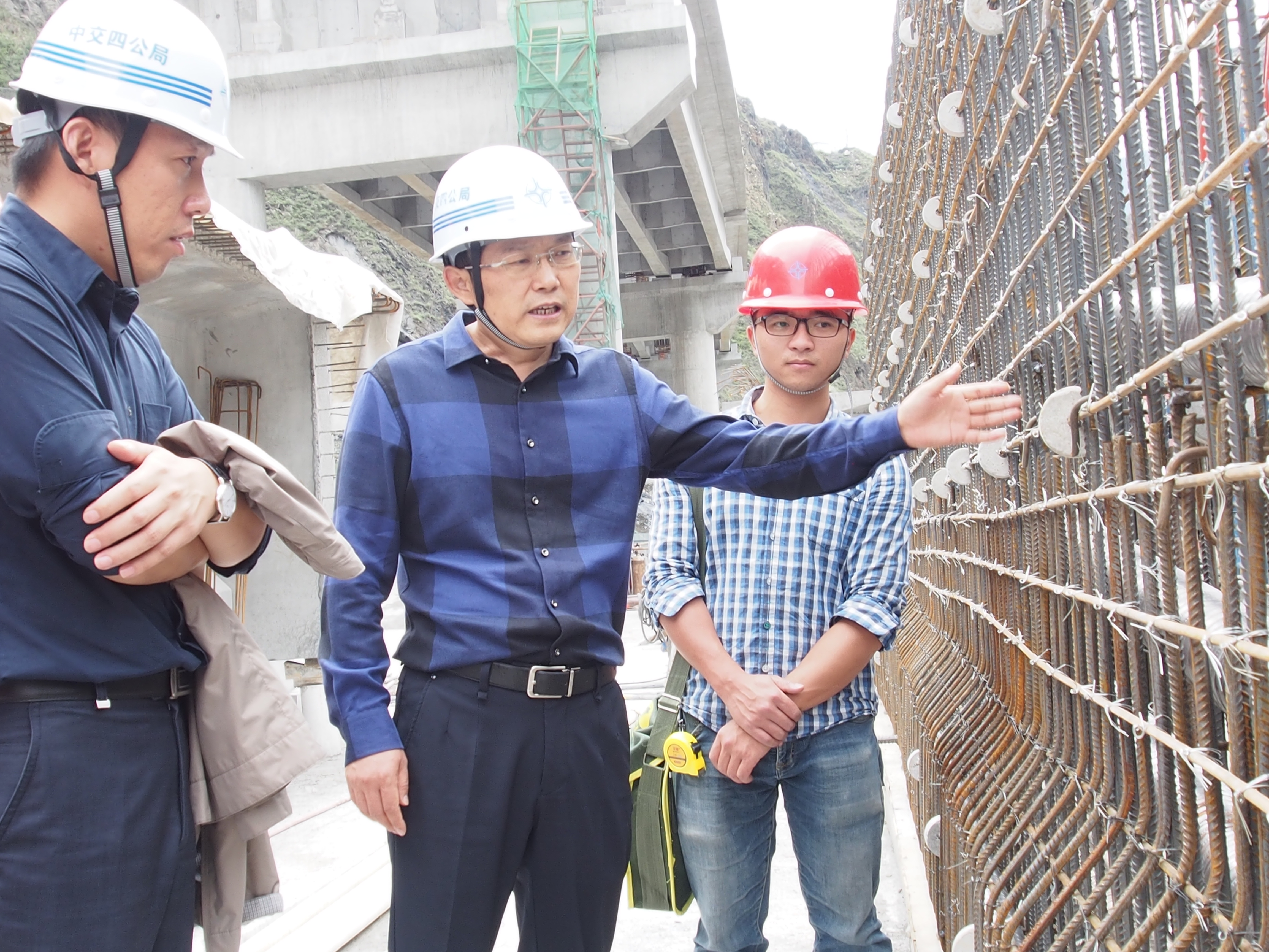 9月27日,四公局总工程师王昕到七公司汶马高速C8标项目检查指导,七公司总工程师宋伟陪同。