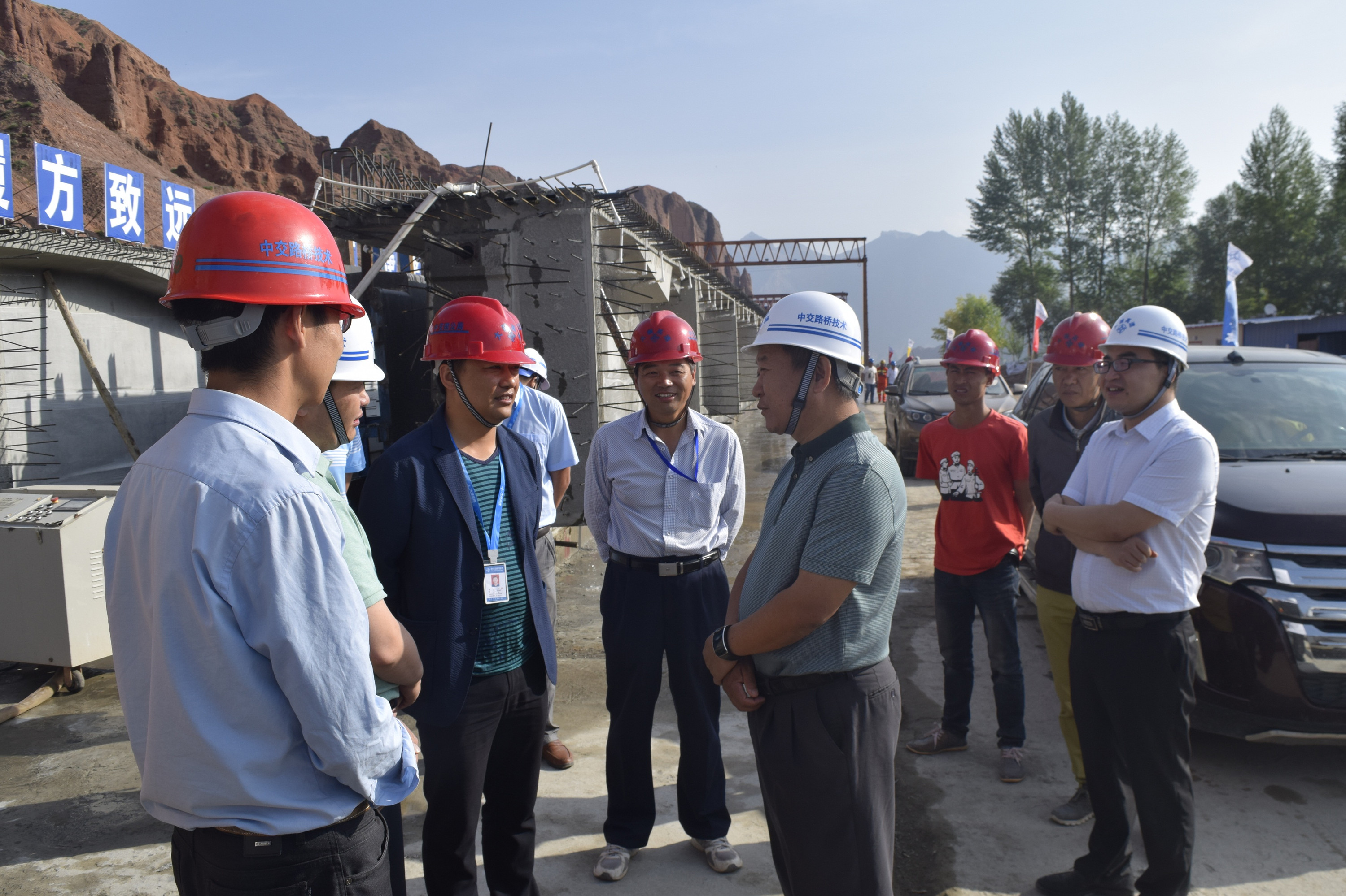 7月5日,中国交建总裁助理、路桥轨道交通事业部总经理王建,副总经理任回兴等一行7人组成的重点监控项目安全生产专项检查、机械设备、防坠落专项整治检查组,到四公局青海大循项目进行检查,中交三公局副总经理王杰先(原四公局四公司总经理)、四公局四公司党委书记米红兵、五公司副总经理孙国华陪同检查。