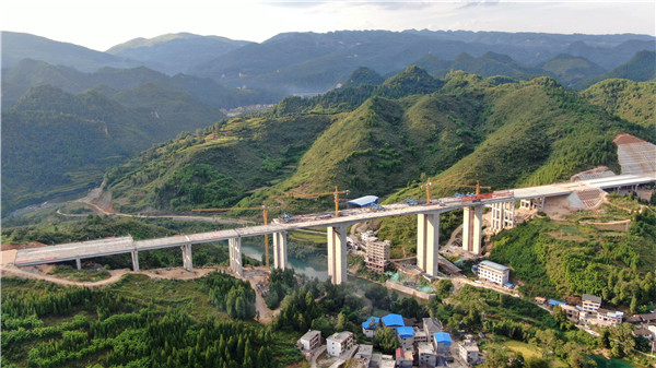 贵州省江口至玉屏(大龙)高速公路,起点位于杭瑞高速与安江高速相交的岳家寨枢纽,途经江口、岑巩、玉屏三个县域,终点与铜大高速公路相接。项目建设总里程73.63公里。其中,陡滩河大桥全长534米,主桥上部采用(55+100+55)米三跨预应力混凝土变截面连续刚构体系,箱梁采用单箱双室截面,纵、竖、横三向预应力体系。项目建成后,对进一步改善区域交通状况,完善贵州省高速公路网,推进江口旅游产业发展,促进铜仁地区的经济交融具有重要意义。