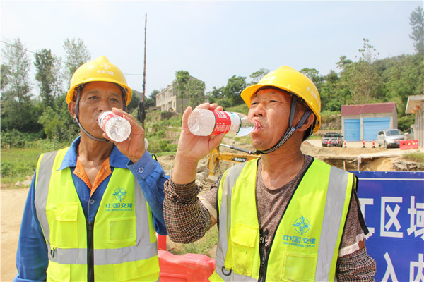 六公司湖北黄冈建养一体化项目开展了“夏季送清凉”活动,为奋战在一线的工人送去绿豆汤、矿泉水、西瓜、藿香正气水等防暑物品,把清凉送到一线,把关怀送给工人。