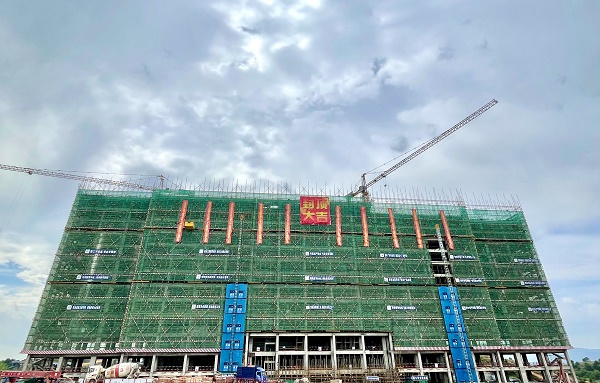 5月10日,第二建筑分公司龙川项目住院楼主体结构封顶。至此,项目主体结构全部封顶。