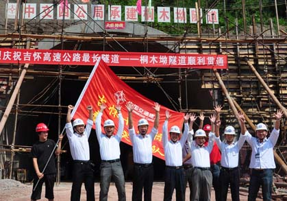 中交四公局第二工程公司承建的吉怀高速控制性工程——桐木坳隧道于2010年8月8日胜利贯通,至此,中交四公局吉怀高速第十三合同段所辖的三座隧道全面贯通。