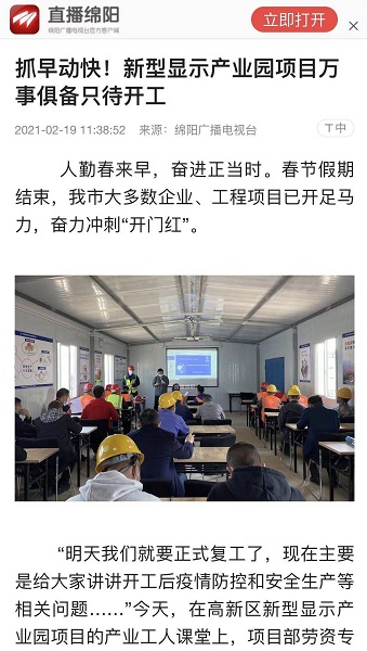 近日,四川省绵阳市广播电视台聚焦报道了三公司绵阳房建项目复工复产动态。