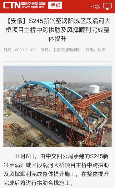 近日,《中国交通报》报道了四公司池祁9标、涡河大桥项目施工进展情况。