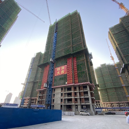 第二建筑分公司上饶项目五栋楼主体结构封顶