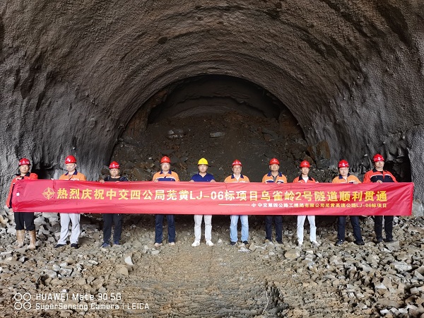 四公司芜黄6标项目乌雀岭2号隧道右洞顺利贯通