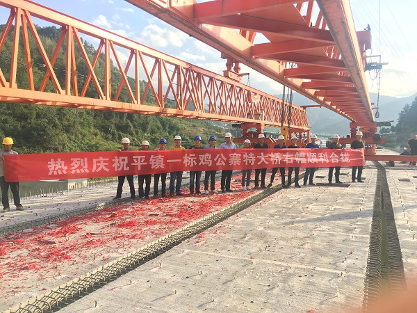 五公司平镇1标鸡公寨特大桥右幅顺利合拢