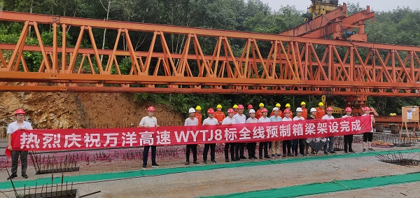 此次箱梁架设全部完成,为万洋高速早日实现通车目标奠定了坚实基础。