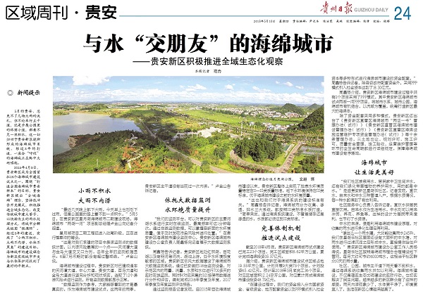 5月10日,投资事业部贵安新区海绵城市试点两湖一河PPP项目在《贵州日报》第24版“区域周刊•贵安”栏目中亮相。