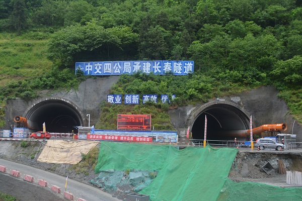 安康至岚皋高速公路位于陕西省东南部,是国高速网银川至百色线(G69)的一部分,是陕西省安康向南突破巴山屏障、连通成渝经济区的关键路线。安岚高速AL-C09合同段起点YK36+838.400(左线ZK36+808.400),终点桩号YK40+914(左线ZK40+809),路线全长4.076km(左线4.001km),采用双向四车道高速公路标准建设,设计速度100公里/小时,整体式路基宽度26米,分离式路基宽度13米,桥梁设计荷载公路-I级,主要工程包括特大桥2座、中隧道4座,桥隧比占99.4%。线路地处大巴山区,属典型“两山夹一沟”地形,坡面植被茂盛,坡积层较厚,地势非常陡峭,施工场地受地域的影响,可利用的场地资源有限,施工平台布设异常困难,且施工区域是当地的旅游风景区,出口位置紧邻S207省道。为确保S207省道的畅通及长春隧道左线安全平稳的出洞,安岚9标全体参建人员迎难而上,精心组织,合理部署,经过多次实地勘察及研究论证,制定出切实可行的隧道出洞方案,为保证施工质量,项目技术人员、安全人员、测量人员及试验人员全程旁站指导,使得长春隧道左线按既定目标平稳有序向前推进,最终得以顺利贯通。