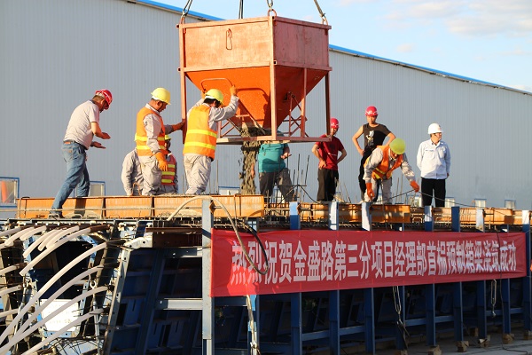 5月29日,总承包公司金盛路三分部项目提升改造工程昭乌达路高架桥首榀预制箱梁顺利浇筑,标志着桥梁上部结构工程进入了新的阶段。