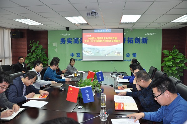 会议宣读了十九大通过的三个决议、郝鹏同志在国资委党委党的十九大精神传达学习动员部署视频会上的讲话、四公局党委书记赵云就学习贯彻落实十九大精神提出的要求、四公局党委关于认真学习宣传贯彻党的十九大精神的实施意见,并对总承包分公司深入学习宣传贯彻党的十九大精神进行动员部署。