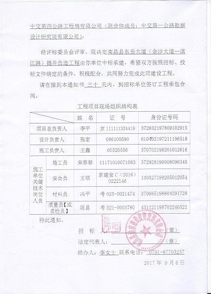 9月6日,在局市场开发部和三公司的共同努力下,由四公局牵头联合中交第一公路勘察设计研究院中标南昌县东岳大道(金沙大道-滨江路)提升改造工程,工程建安费约2.9亿元,工期300日历天(含设计)。