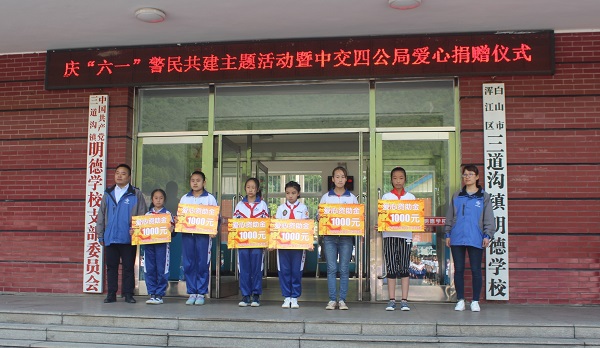 在满足施工生产的同时,项目党支部从不忘做好路地共建活动,开展了“关爱山区儿童,中交与你同行”主题活动。开展“为社会尽一份责任,为他人送去一份爱心”学习雷锋主题活动,慰问当地敬老院,得到当地政府部门的好评,并在浑江区政务信息栏上宣传。项目还开展了“情系鸭绿江,爱护母亲河”徒步走捡垃圾活动;参加了三道沟镇明德学校举办的庆“六一”警民共建主题活动暨中交四公局爱心捐赠仪式,得到了镇政府和学校领导的高度重视,校长王思华激动地说,中交人工作勤勤恳恳、认认真真,不仅建设一流的隧道,生活中也充满爱心,感谢你们对我校贫困学生的捐赠,祝中交四公局越来越好!活动还得到了白山浑江区广电局的报。项目篮球队还受邀参加由三道沟镇政府举办的庆“八一”军警民友谊篮球赛,获得“道德风尚奖”。