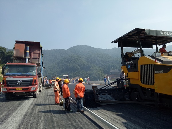 为确保高质量、高标准完成沥青下面层试验段摊铺作业,项目超前谋划,倒排工期,以最快的时间安装调试完沥青拌和站;施工前组织技术人员多次对机械操作人员、现场管理人员进行了详细的技术培训和安全交底。摊铺过程中,现场施工人员更是严格按照标准化作业,各部门分工明确、各司其职,从摊铺层尺寸、沥青混合料温度以及摊铺层的表面质量等方面,对施工各环节进行全程监控。试验段摊铺结束后,试验室、测量组对试铺路段的压实度、平整度、厚度等进行了检测,并及时收集相关数据和施工图片,为下一步全面展开沥青路面施工提供技术保障。铺筑过程中,指挥部、市质监局、总监办等领导到现场观看了铺筑过程,并给予了高度支持和关注。