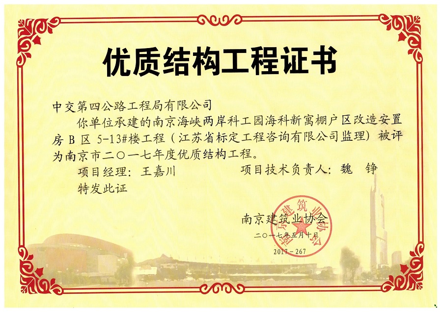 此次获评优质结构工程,进一步提升了四公局在南京的品牌知名度和影响力。