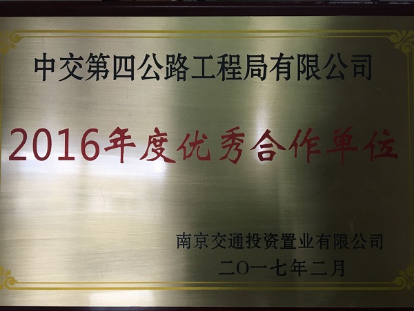 近日,建筑公司被业主单位——南京铁路建设投资有限责任公司授予“2016年度优秀合作单位称号”,建筑公司龙西项目部经理龙伟获评“优秀项目经理”称号。