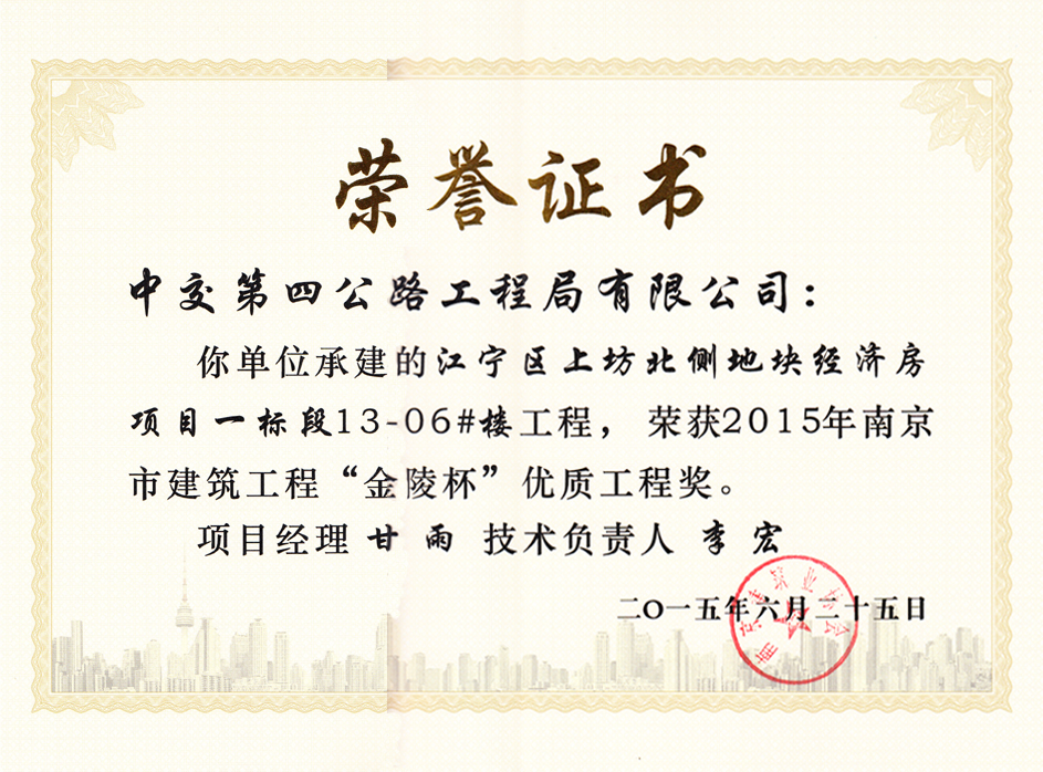 近日,建筑公司南京上坊保障房项目11地块02、05栋及12地块06栋工程荣获2015年南京市建筑工程“金陵杯”优质工程奖。